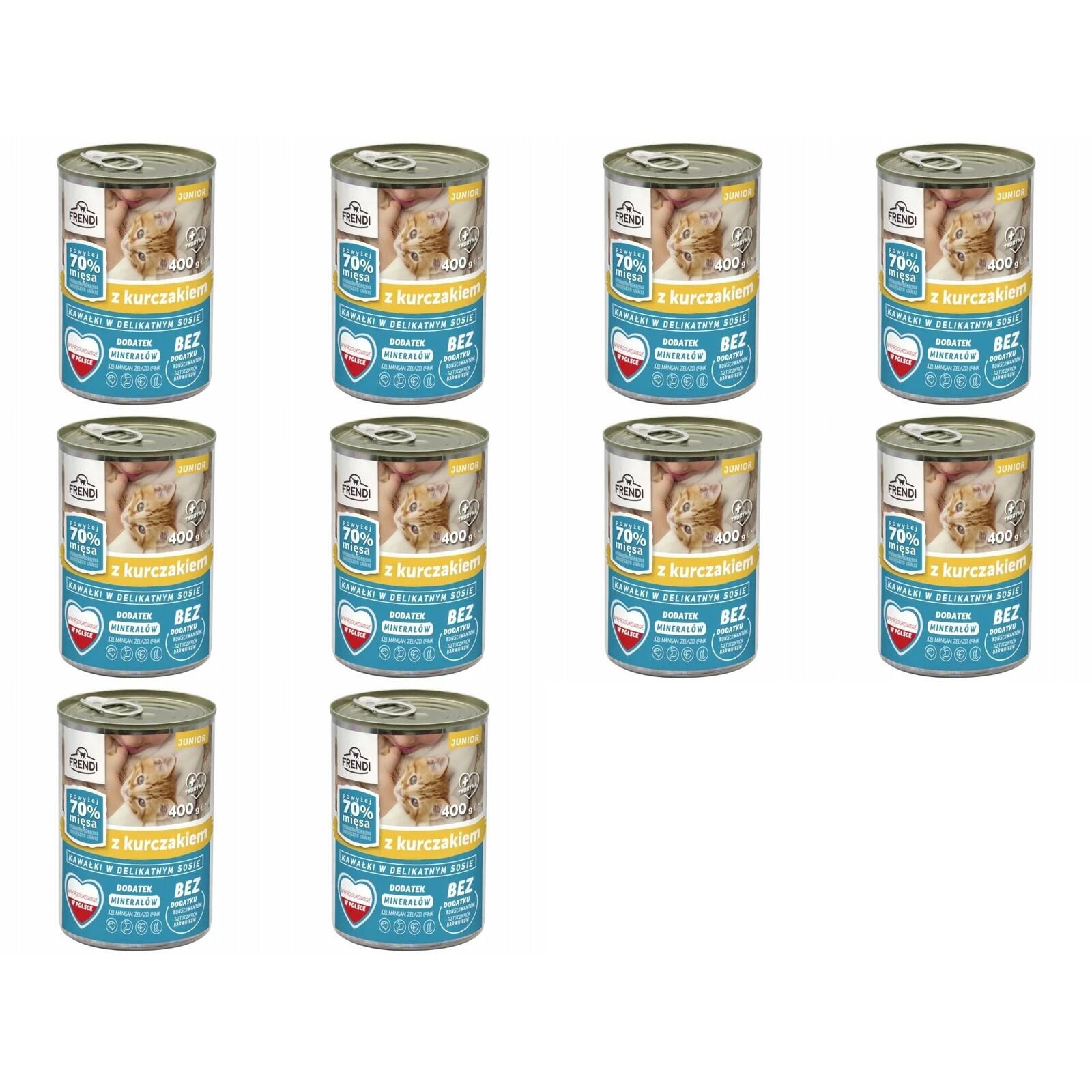 Komplet składa się z 10x FRENDI karma mokra dla kota kawałki w sosie z kurczakiem JUNIOR 400g
