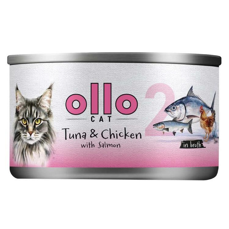 OLLO Cat nr 2 - mokra karma dla kota, tuńczyk i kurczak z łososiem w sosie własnym 70g