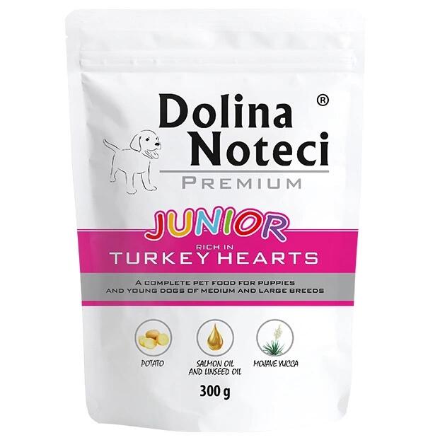 Mokra karma dla psa junior Dolina Noteci Premium bogata w serca z indyka saszetka 300 g