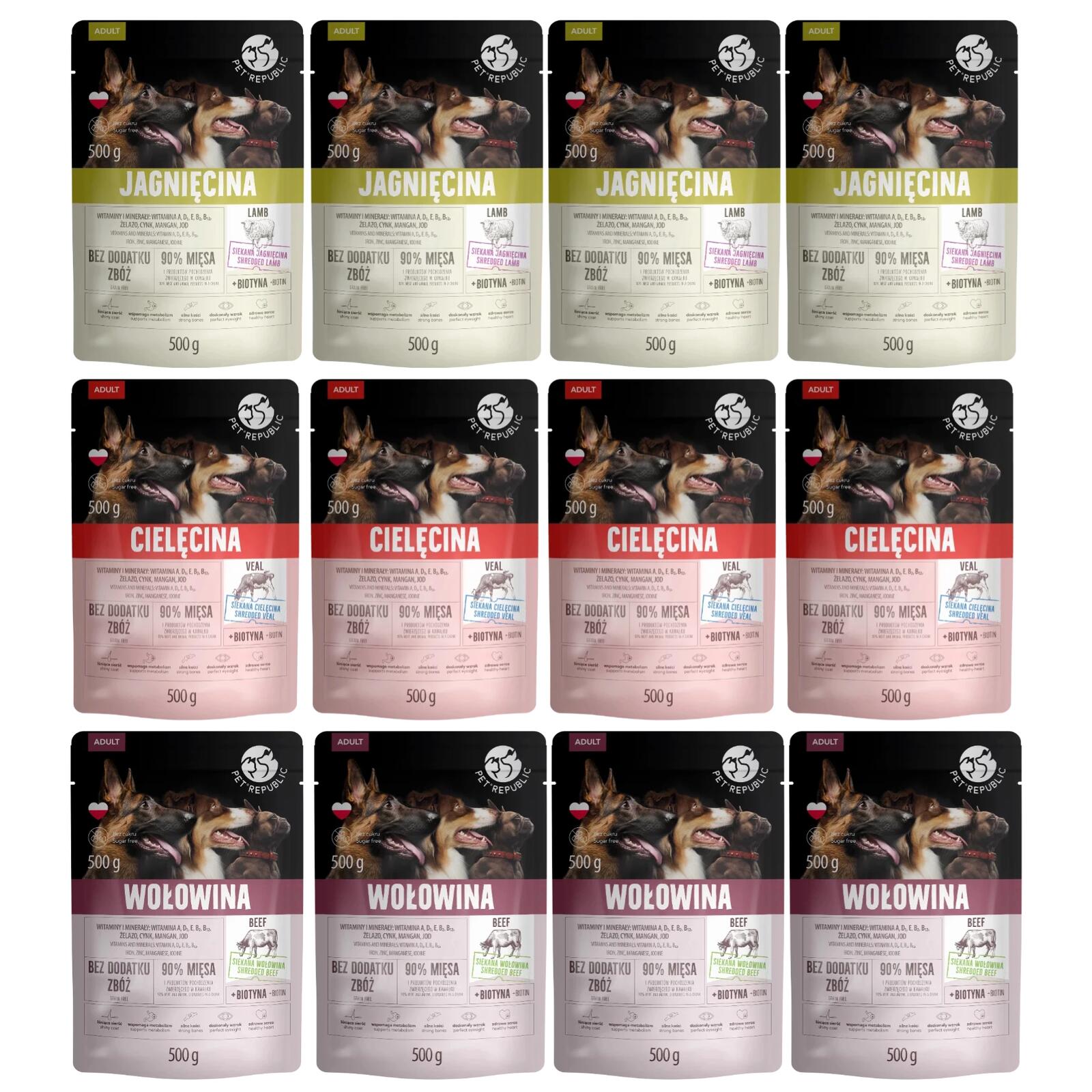 Mokra karma dla psa PetRepublic saszetki MIX SMAKÓW 12x500g