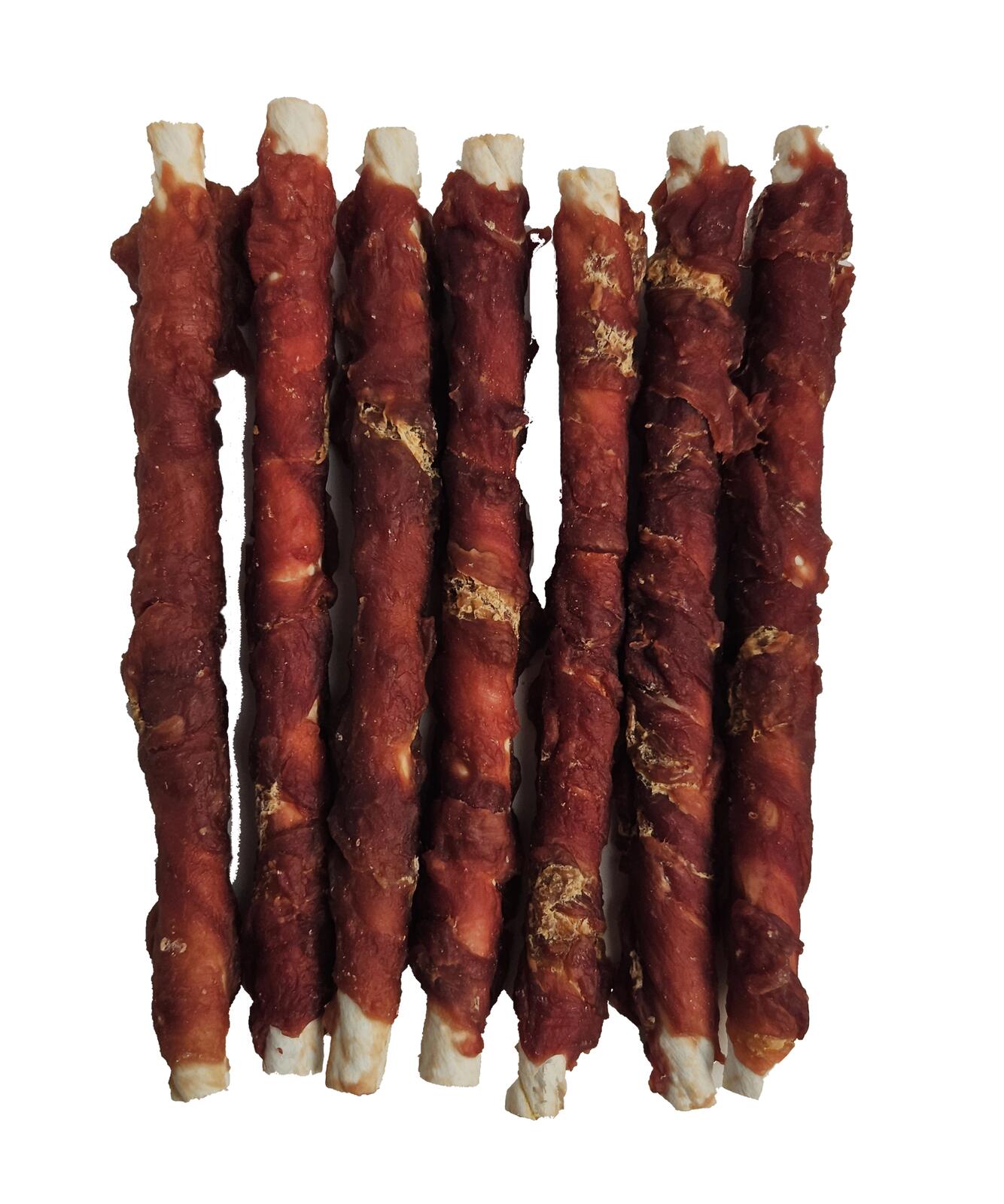 Skład: KACZKA 61%, SKÓRA SUROWA 31%, MĄKA RYŻOWA 2%, BIAŁKO ROŚLINNE 2%, SKROBIA ZIEMNIACZANA 2,6%, GLICERYNA 2% , MLECZAN WAPNIA 1%, SORBINIAN POTASU 0,1%, SÓL 0,1%