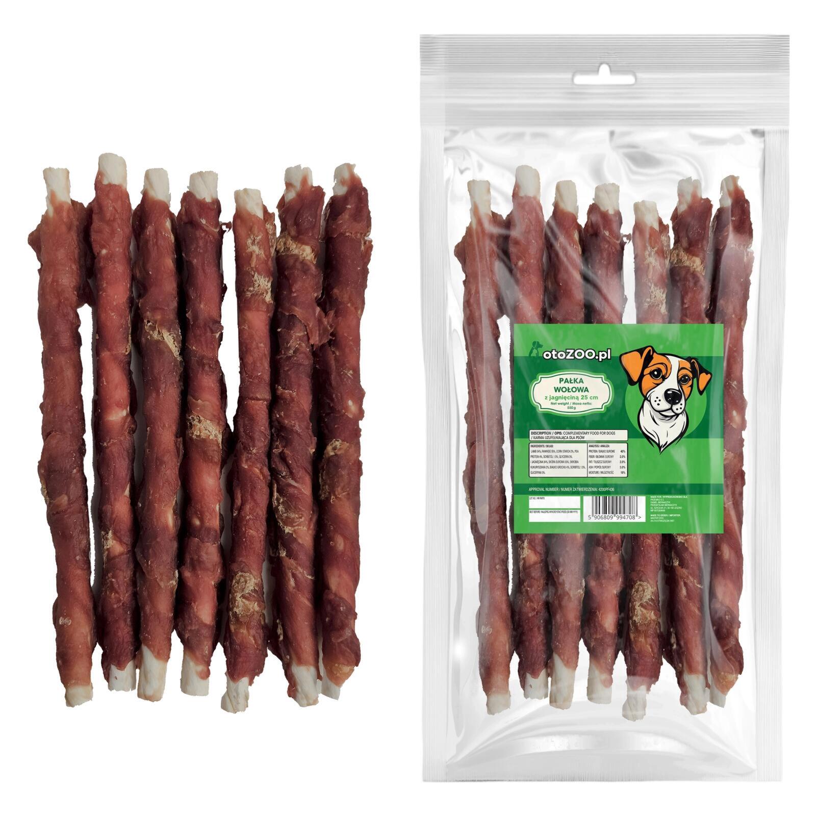 PRZYSMAK DLA PSA PAŁKA WOŁOWA Z JAGNIĘCINĄ 25cm 500G + 10% GRATIS