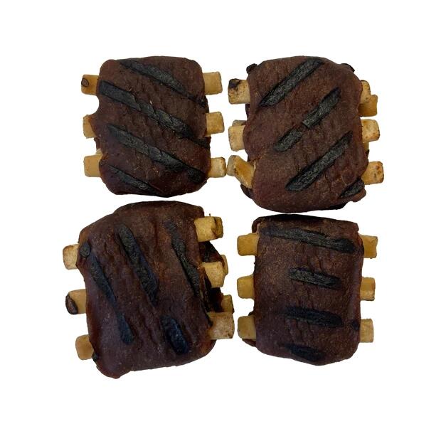 Aromatyczny, intensywny smak BBQ zachęca do żucia, a solidna struktura przysmaku gwarantuje świetną zabawę i naturalną potrzebę gryzienia.