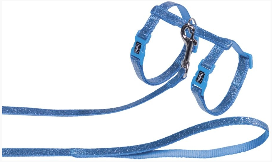 Lśniący zestaw uprzęży Nobby z smyczą dla kota. Regulowany rozmiar uprzęży.