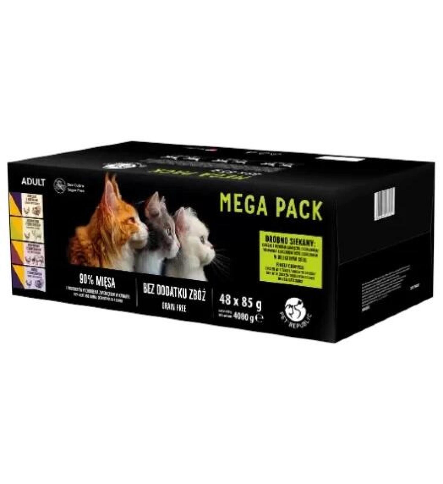 - 1x PetRepublic karma mokra dla kotów MIX mięsno-rybne smaki 48x85g
